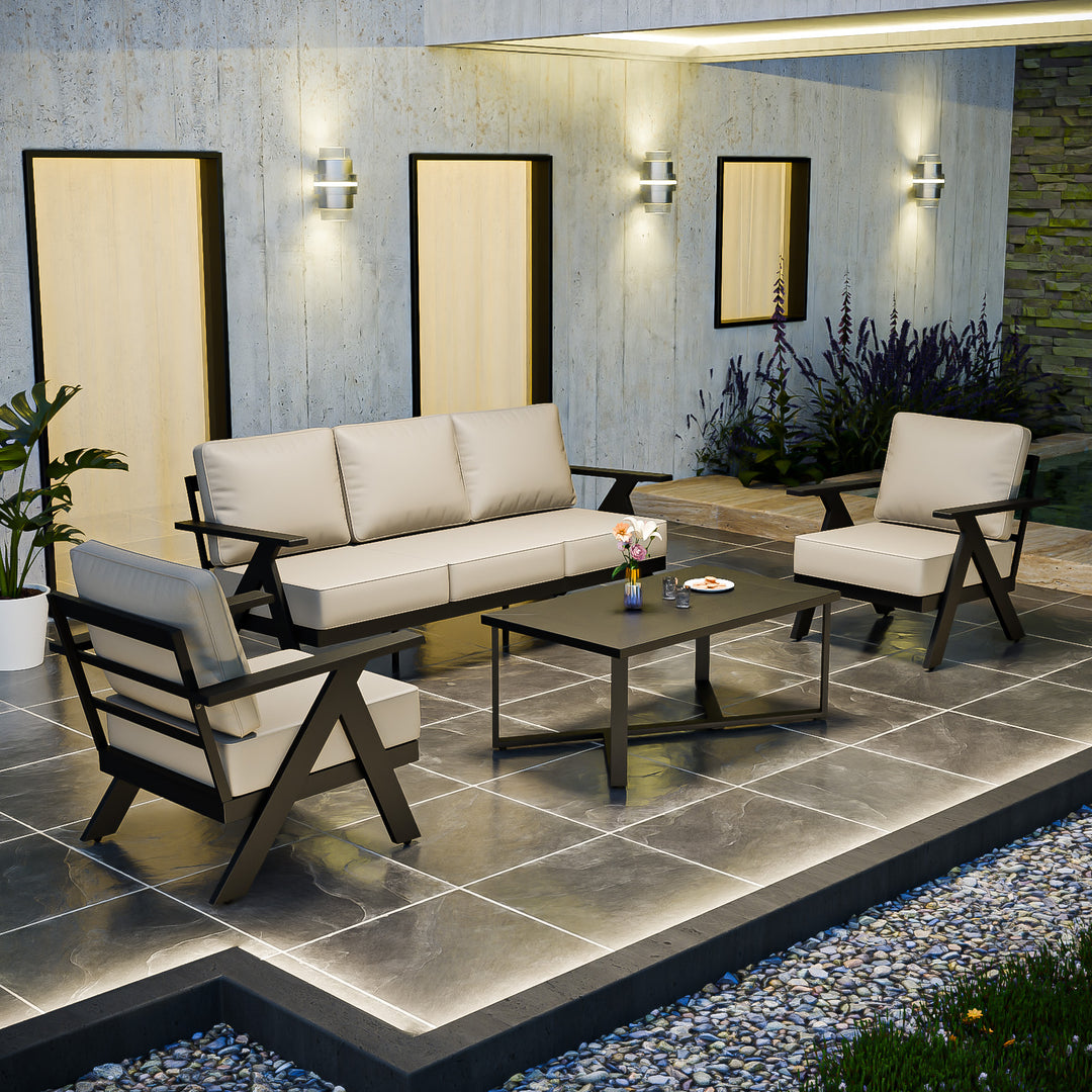 COOS BAY Iron Luxe Modern Outdoor 4 Piece Patio Furniture Set