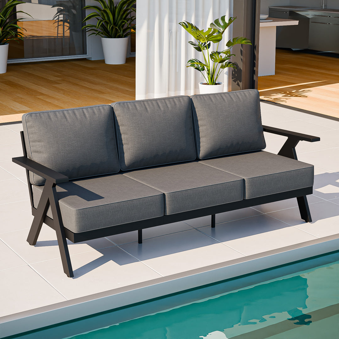 COOS BAY Iron Luxe Modern Outdoor Sofa, Black/Beige