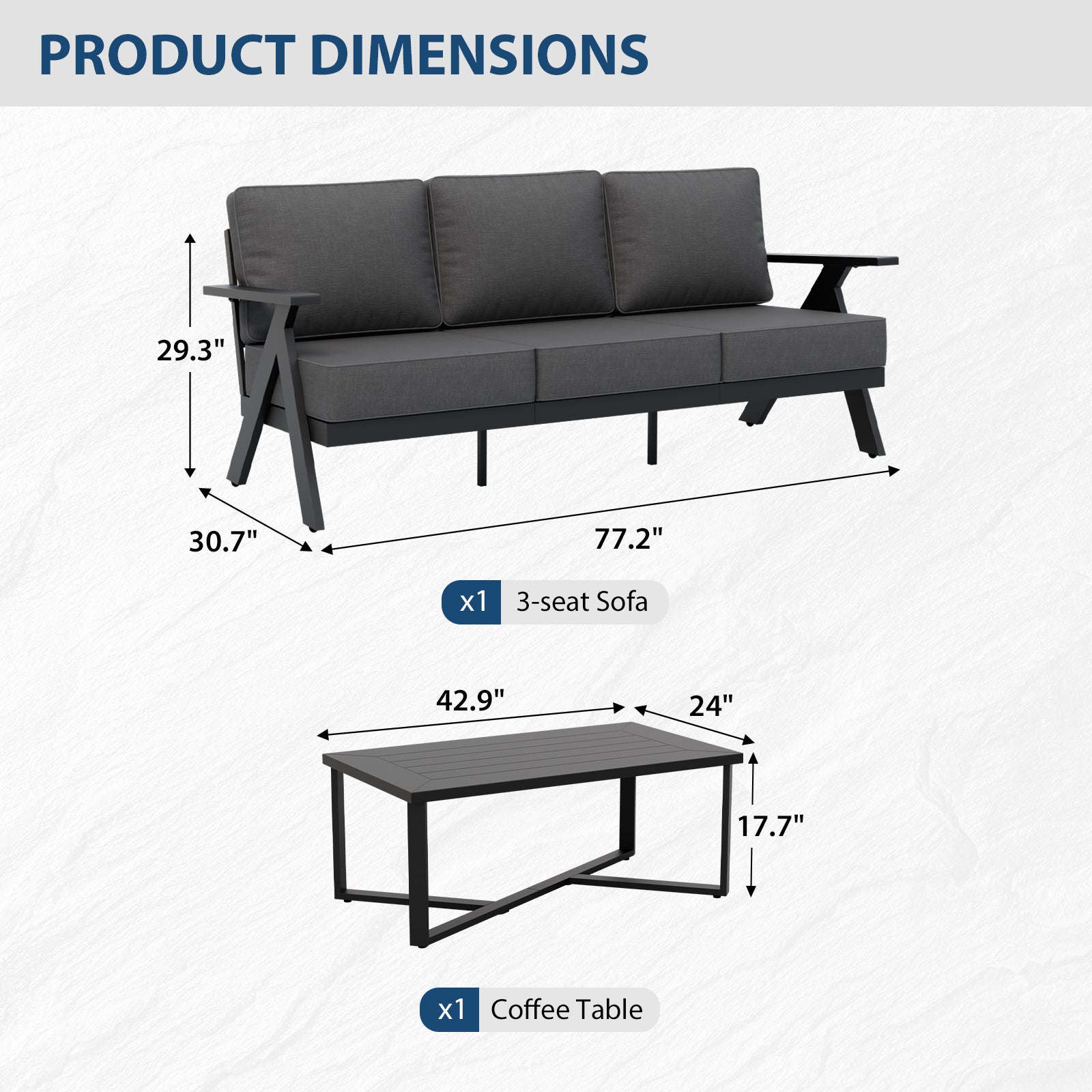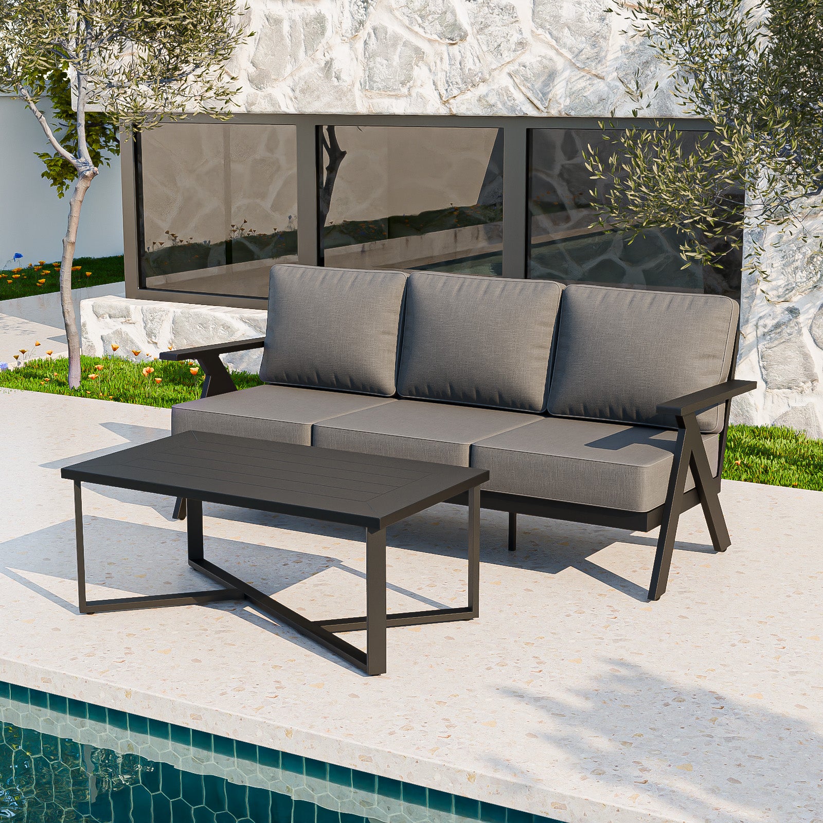 COOS BAY Iron Luxe Modern Outdoor 3 Seat Couch and Coffee Table Set