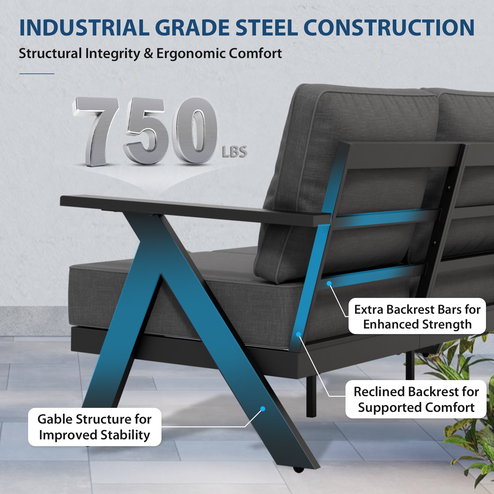 DURABLE STEEL FRAME FOR OUTDOOR USE: Built with a heavy-duty, powder-coated steel frame, this outdoor furniture set offers reliable strength and stability. The weather-resistant finish ensures long-term performance, making it a great addition to any lounge area