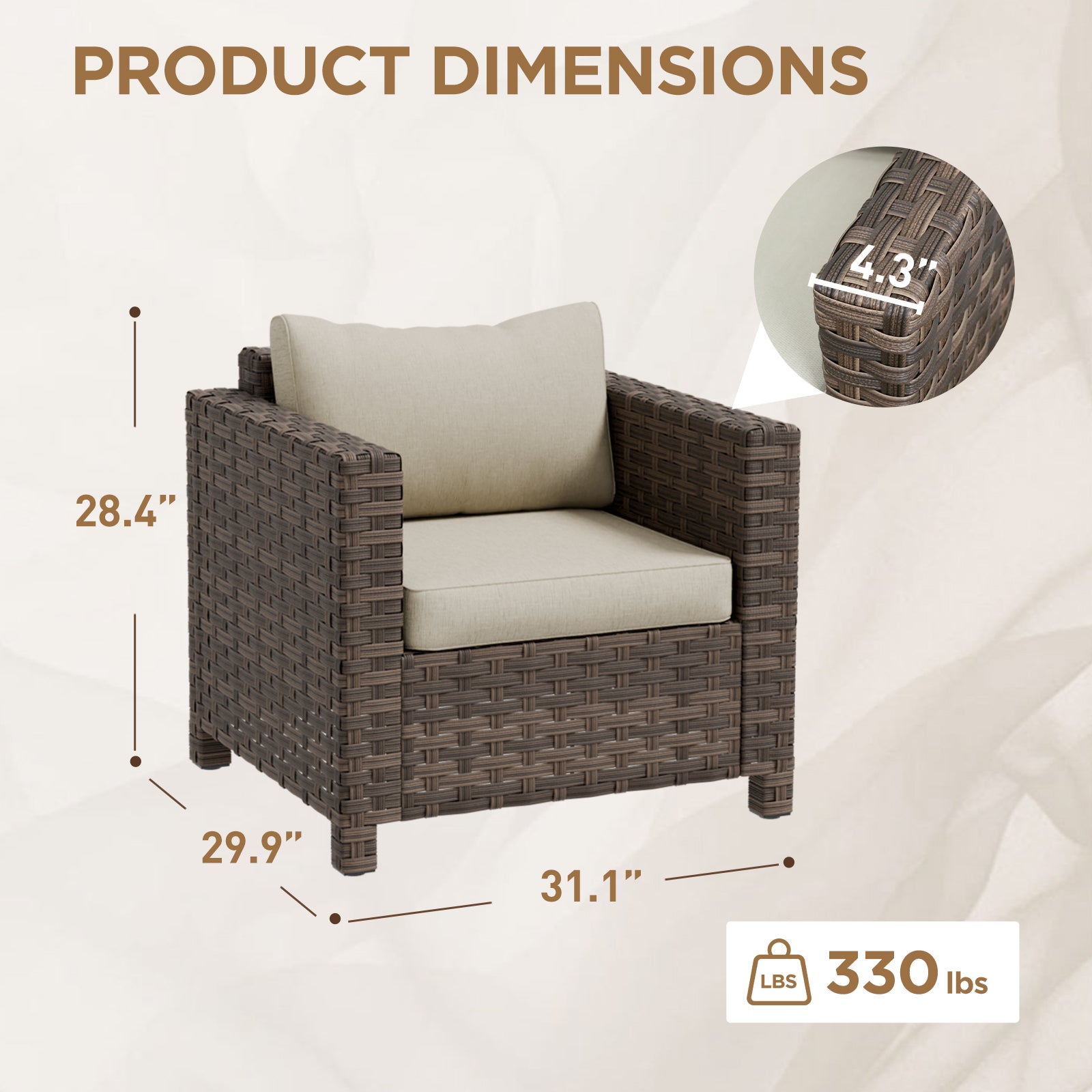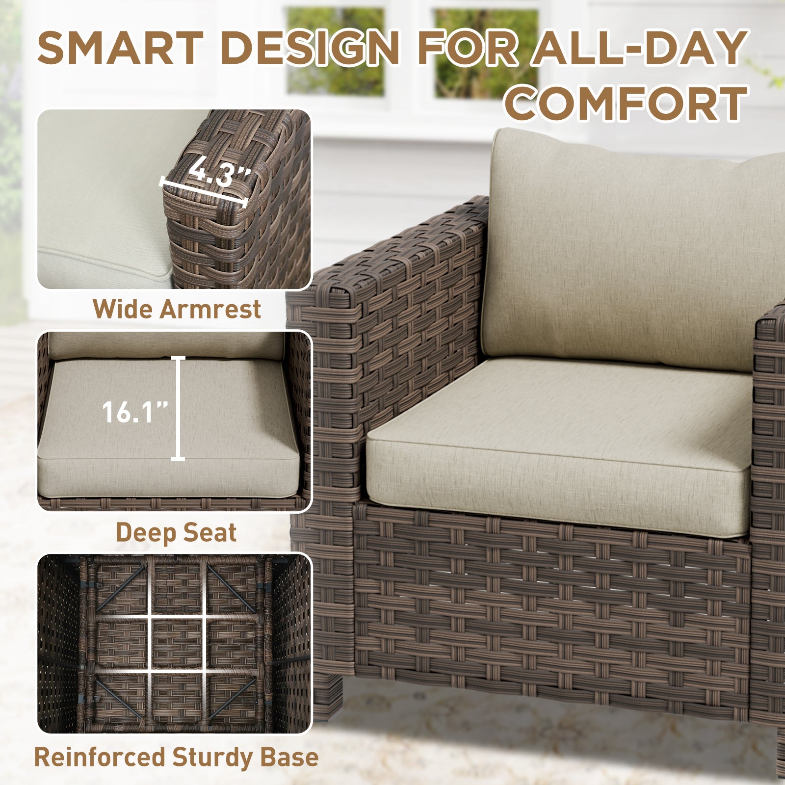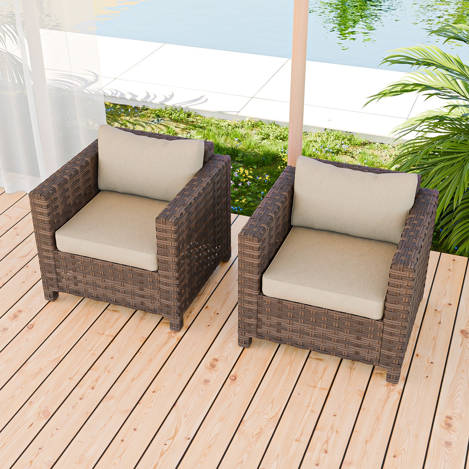 COOS BAY Lanai Chic Outdoor Chair, Deep Seating Patio Chairs, Modern Outdoor Armchairs, Set of 1, 2, 4, Brown/Beige