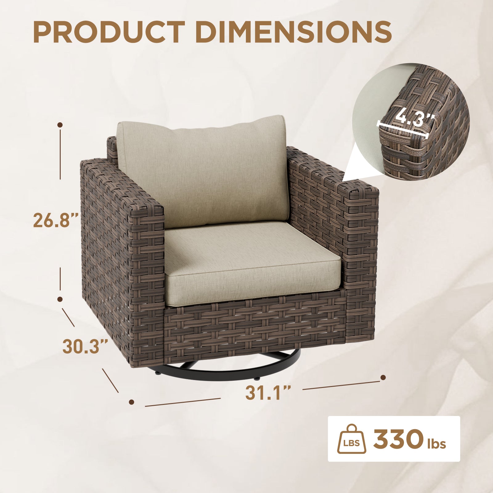 COOS BAY Lanai Chic Outdoor Swivel Rocking Chair, Patio Rocking Chair Set of 1, 2, 4, Deep Seat Patio Chair, Brown/Beige