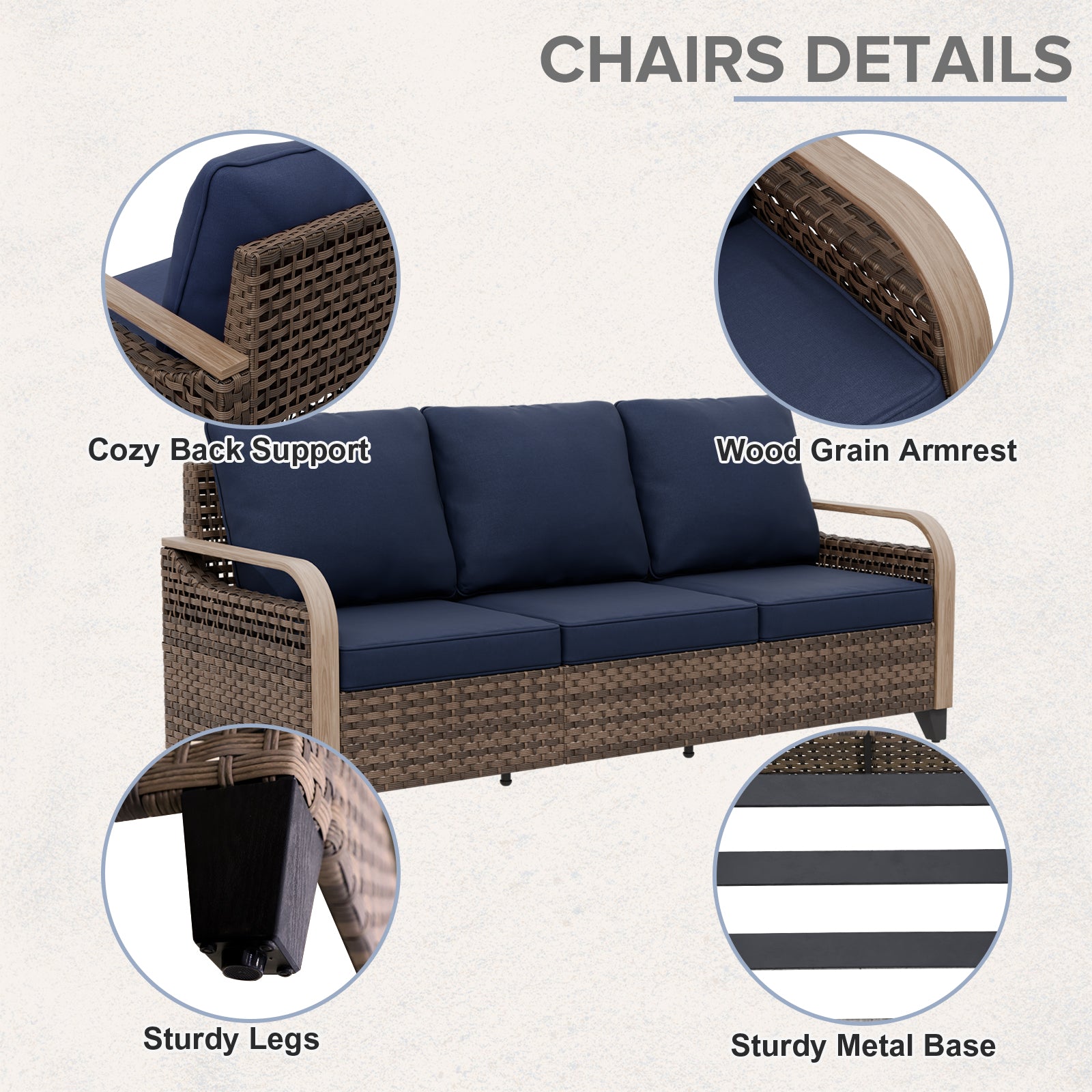 COOS BAY Modern Wicker Outdoor 3 Seat Sofa