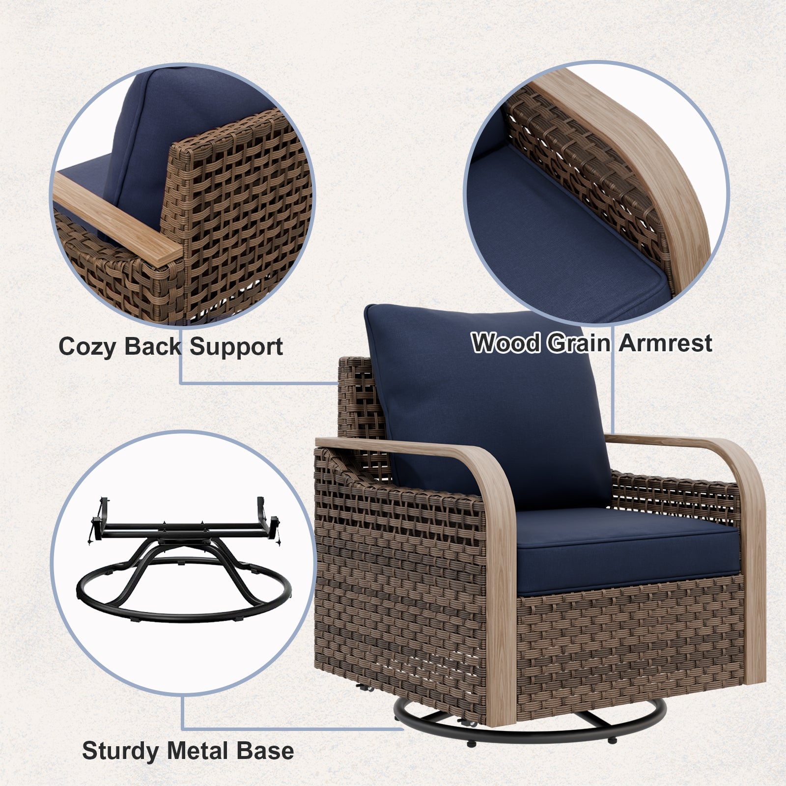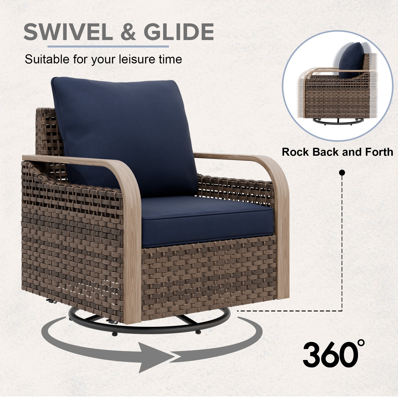 GENTLE ROCKING & 360° SWIVEL: This modern wicker patio rocking chair combines a smooth gliding motion for relaxation with a full 360° swivel, offering seamless rotation for convenience and style