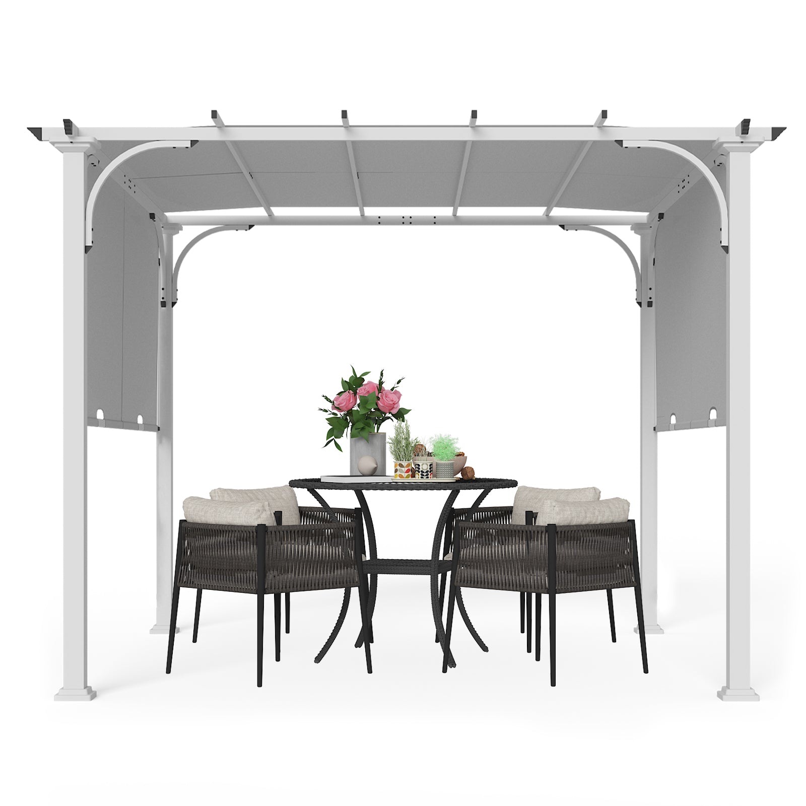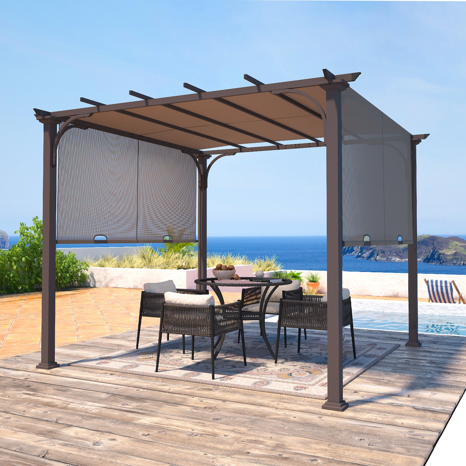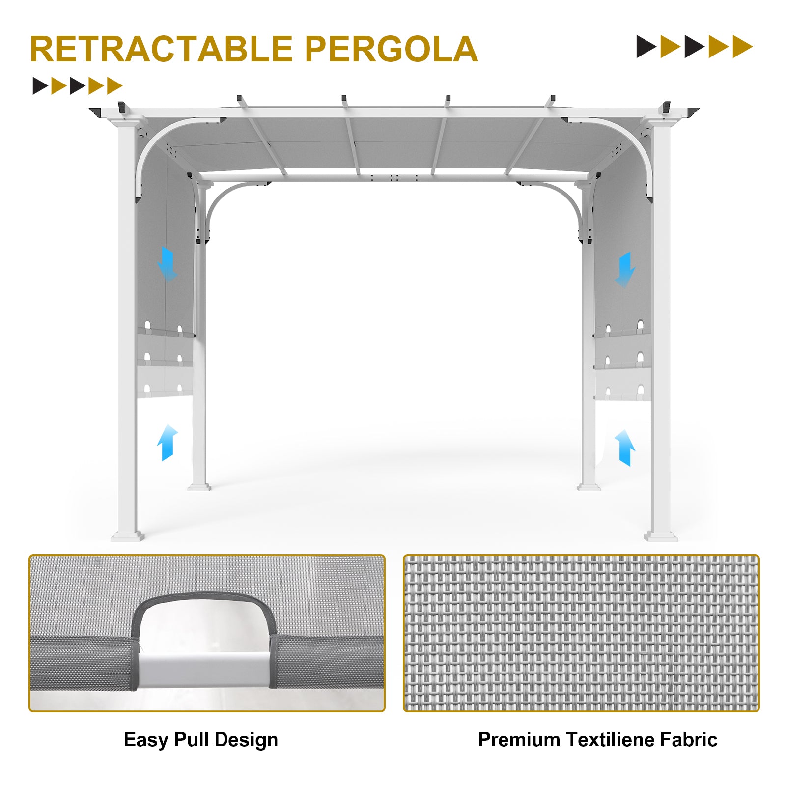 COOS BAY Outdoor Pergola 10x10 with Retractable Textilene Canopy
