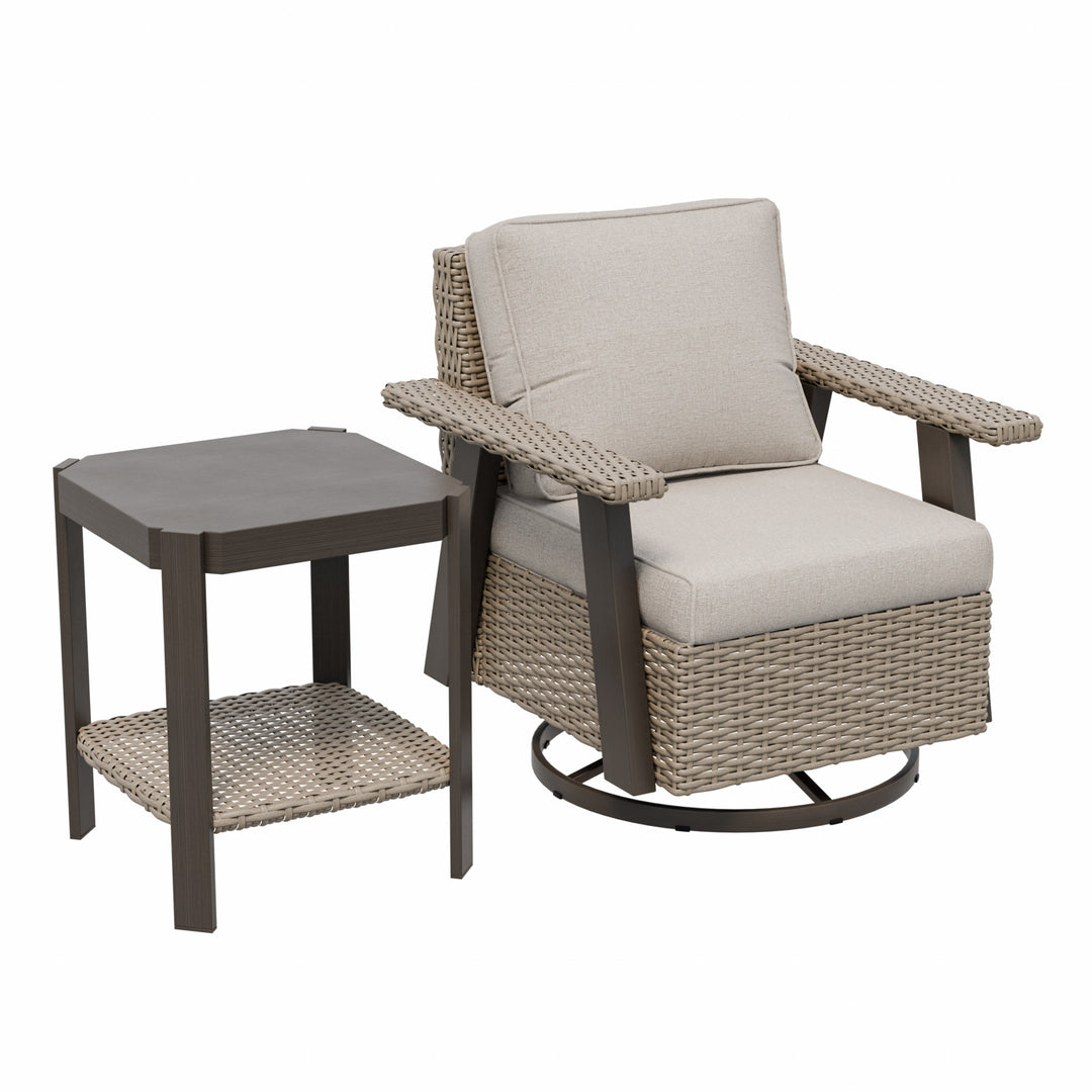 Rustic Hideaway 2-Piece Outdoor Swivel Rocker Patio Chair and Table Set, Beige/Beige, Black, Dark Blue, Red, Tan