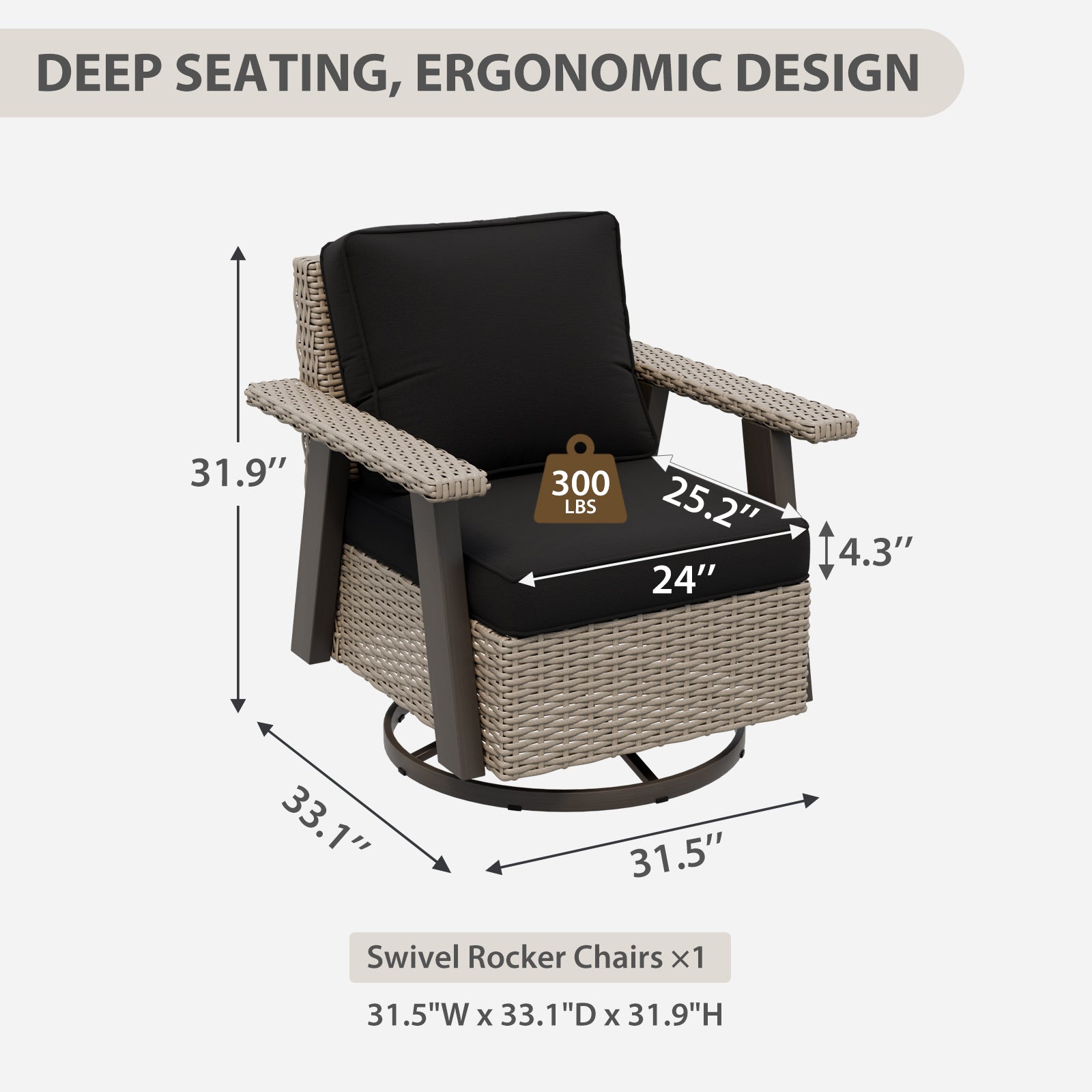 360° SWIVEL ROCKING CHAIR: Engineered to swivel 360° and glide back-and-forth, this patio chair offers a steady, soothing motion that invites you to relax for reading, tea time and unwinding in style. Transform your patio, garden, or porch into a personal outdoor oasis