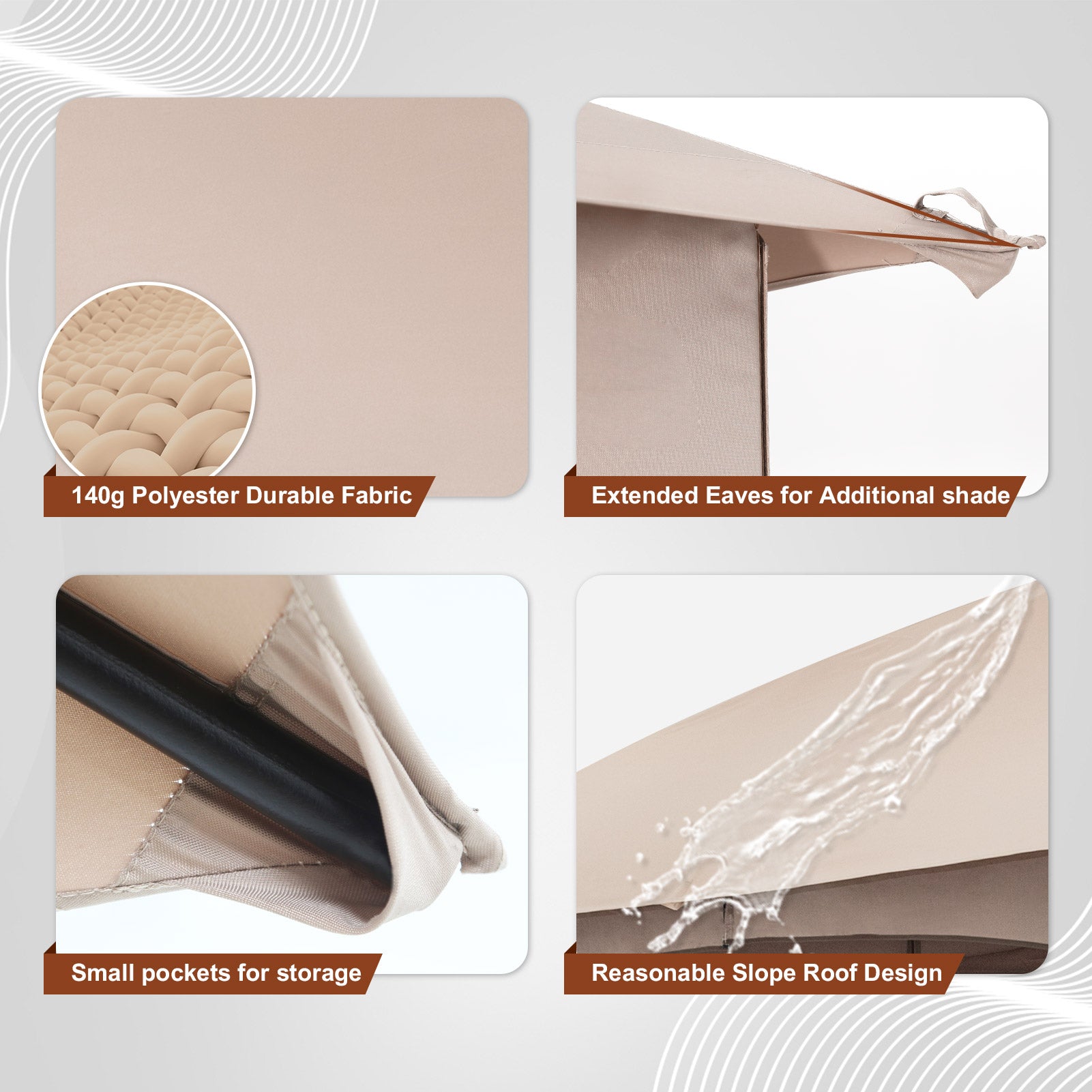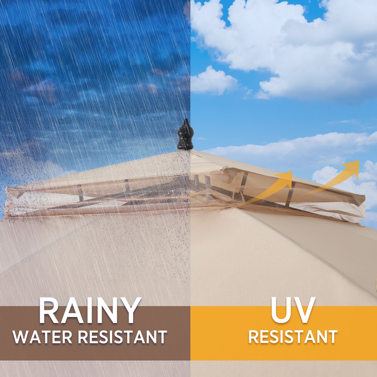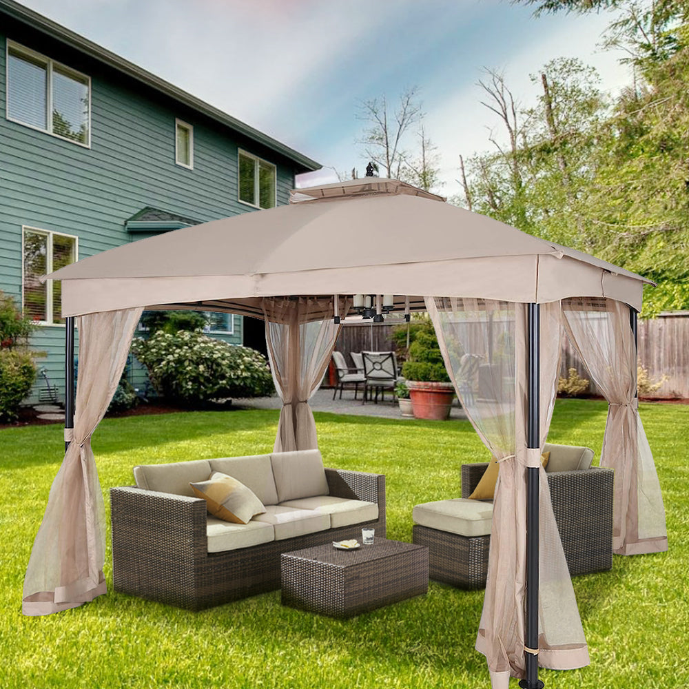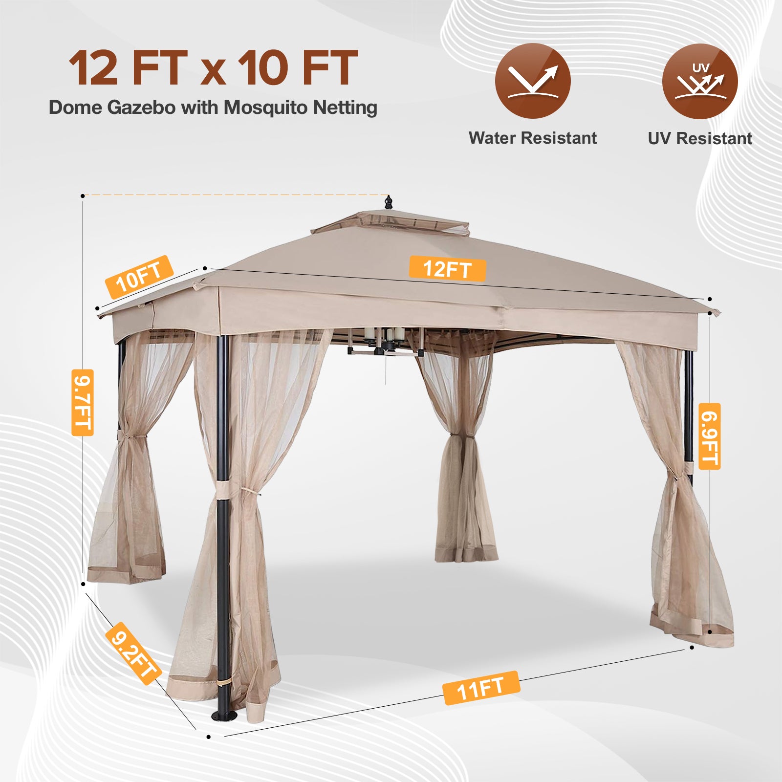 COOS BAY 10x12 Patio Dome Gazebo w/Mosquito Netting, Two-Tier Vented Top for Backyard Garden Lawn (Beige)