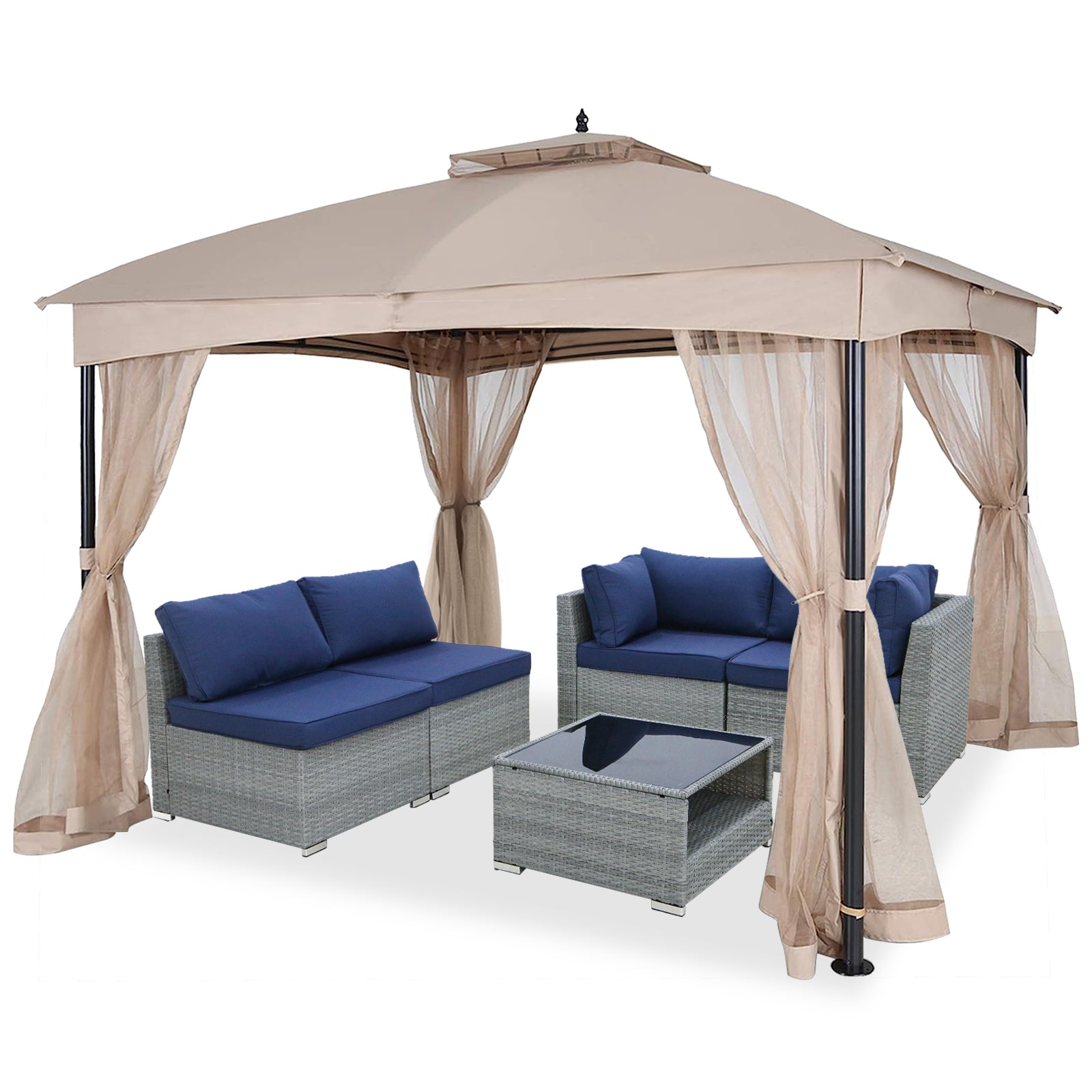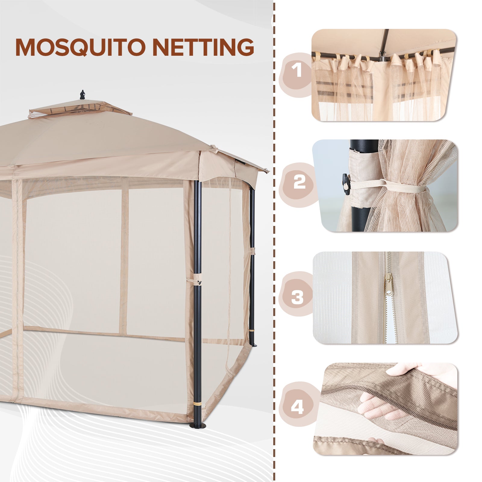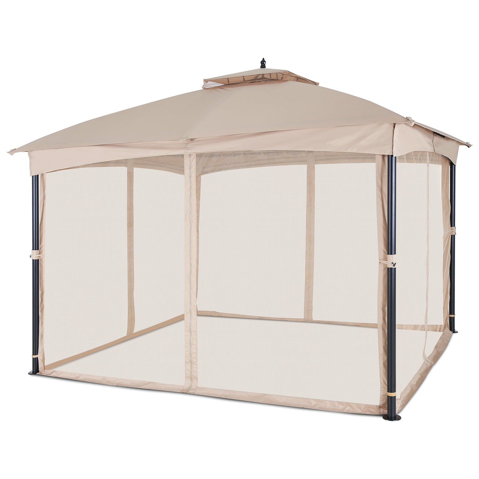 COOS BAY 10x12 Patio Dome Gazebo w/Mosquito Netting, Two-Tier Vented Top for Backyard Garden Lawn (Beige)