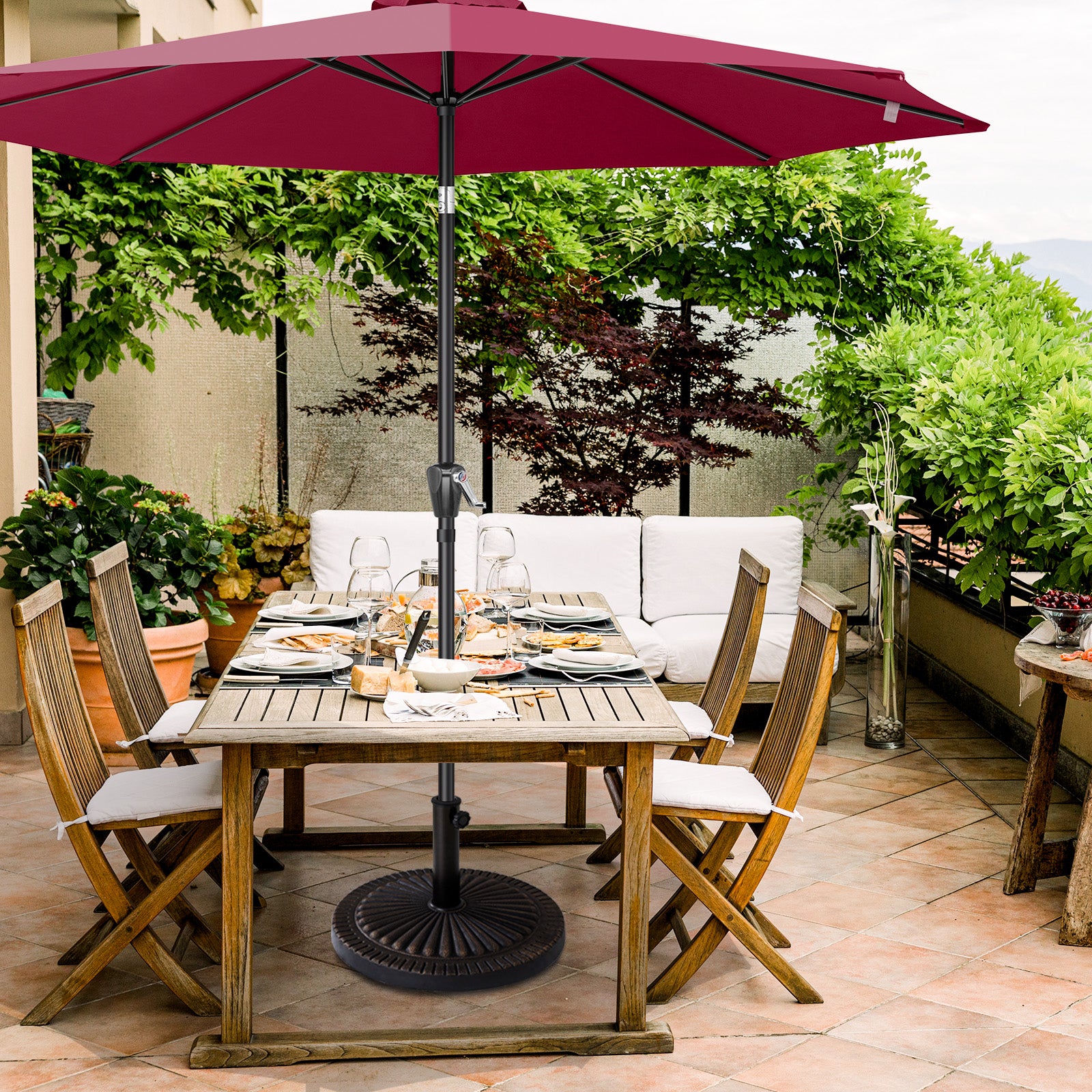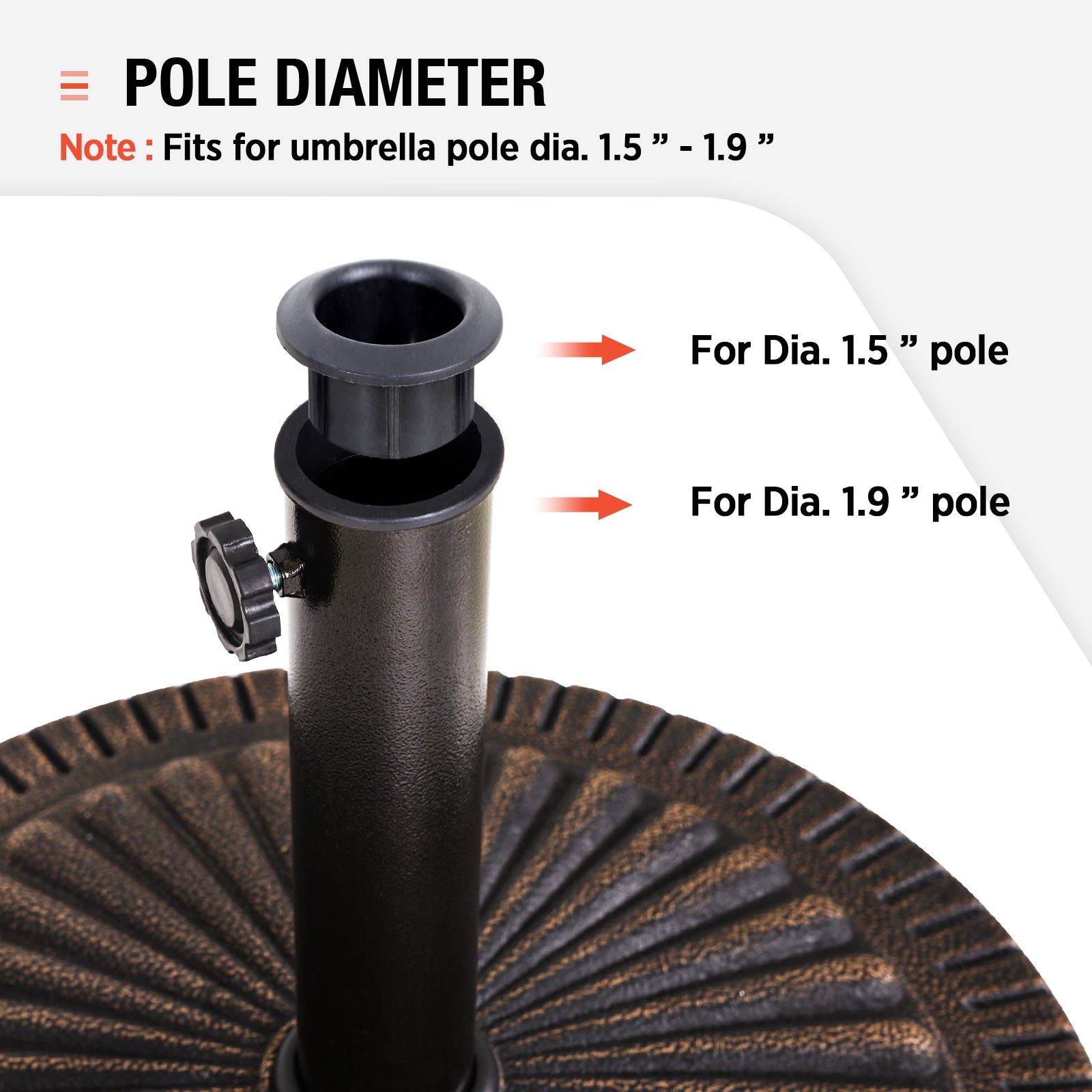 • Adjustable Fit: The umbrella stand features a set screw, which can adjust to the umbrella poles with diameters of 1.5 in to 1.9 in. Its heavy-duty, 31 pound design holds patio umbrellas steady in breezy weather. Fits most 7.5 ft umbrellas or will hold a 9 ft umbrella if used under a table.